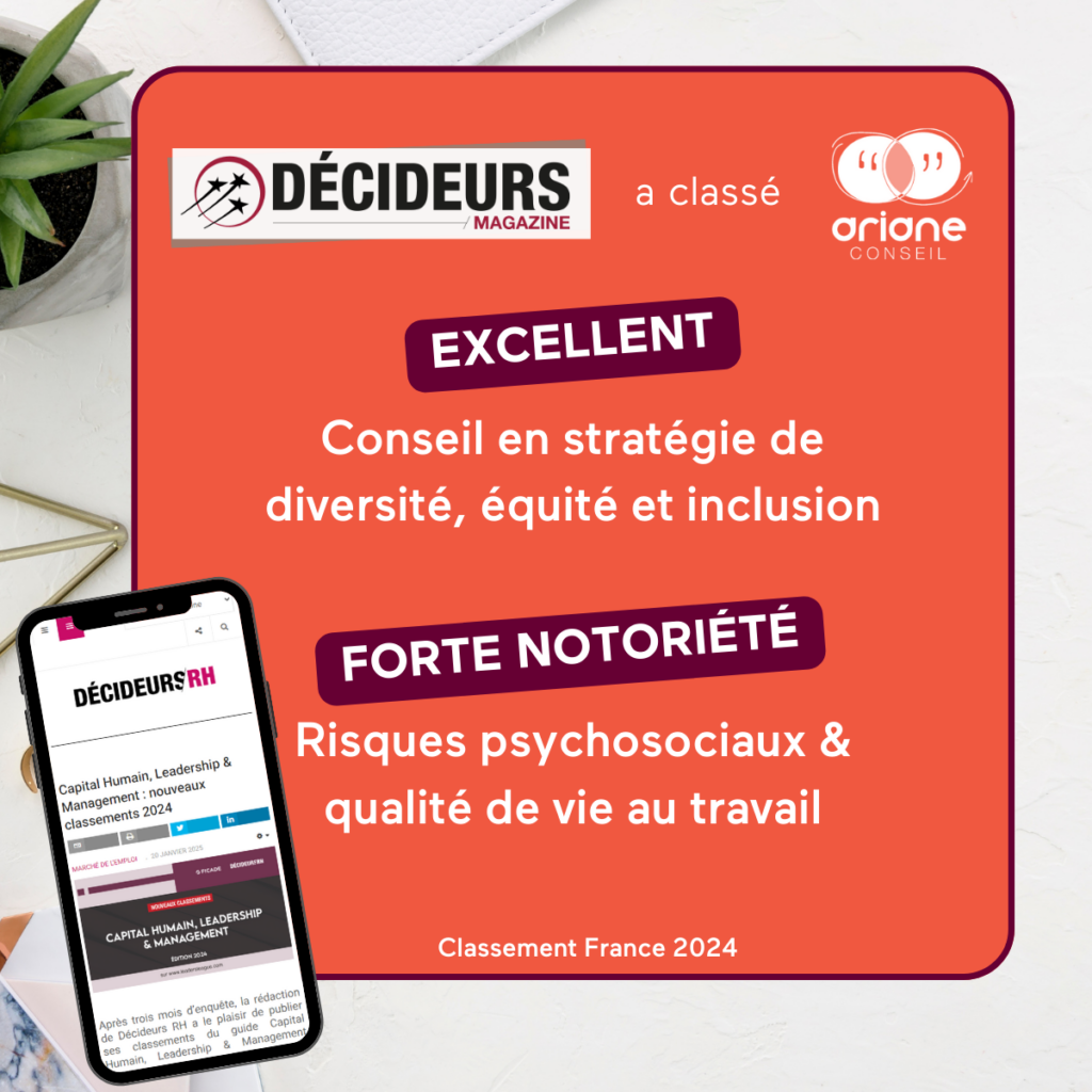 Ces distinctions reflètent notre engagement continu à accompagner les organisations dans la promotion de la diversité, de l’équité et de l’inclusion, ainsi que dans la prévention des risques psychosociaux et l’amélioration de la qualité de vie au travail.