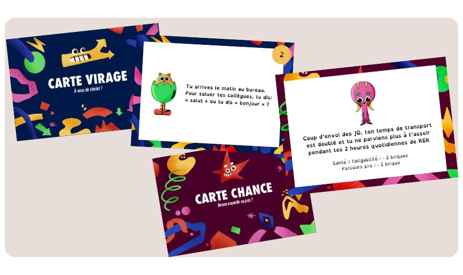 Des cartes « virage », où il vous faudra faire des choix, et des cartes « chance », figurant un événement de la vie comme tout le monde peut en connaître, vont vous amener à vous interroger sur l’impact du handicap sur la qualité de vie, à vous projeter et à mieux comprendre ce que vivre avec une situation de handicap signifie.